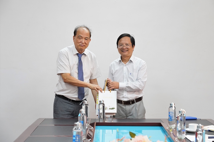 Prof. Dr. Scs. Vu Hoang Linh, Rector of the University of Sciences (on the right), and Associate Professor, Dr. Ngac An Bang, Vice Rector, during the meeting with NYCU