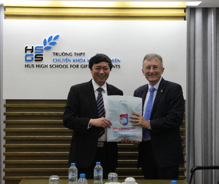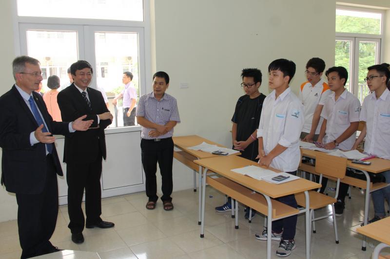 Director-General Yves Demay, Assoc. Prof. Dr. Nguyen Van Noi, and the Board of Rectors of High School for Gifted Students discussed the prospect toward the cooperation between the two sides, with a focus on student exchange in the near future. Namely, in the learning process, Vietnamese students can come to France for learning about 6 months; at the same time, French students can come to Vietnam to attend short-term courses, internships or practical experience. The two universities enhance cooperation in the training as well as more research and eventually joining in collaboration with dual training, conduct joint research activities.