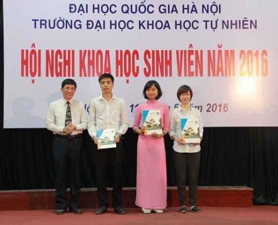 Prof. Dr. Phan Tuan Nghia awarded certificates and prizes for the 3 students achieved "the best report presentation" at the Students Scientific Conference 2016.